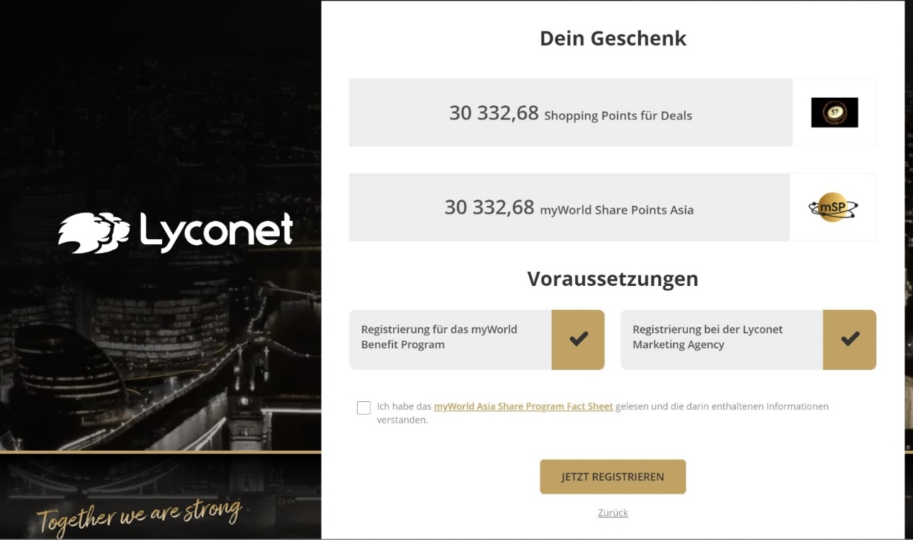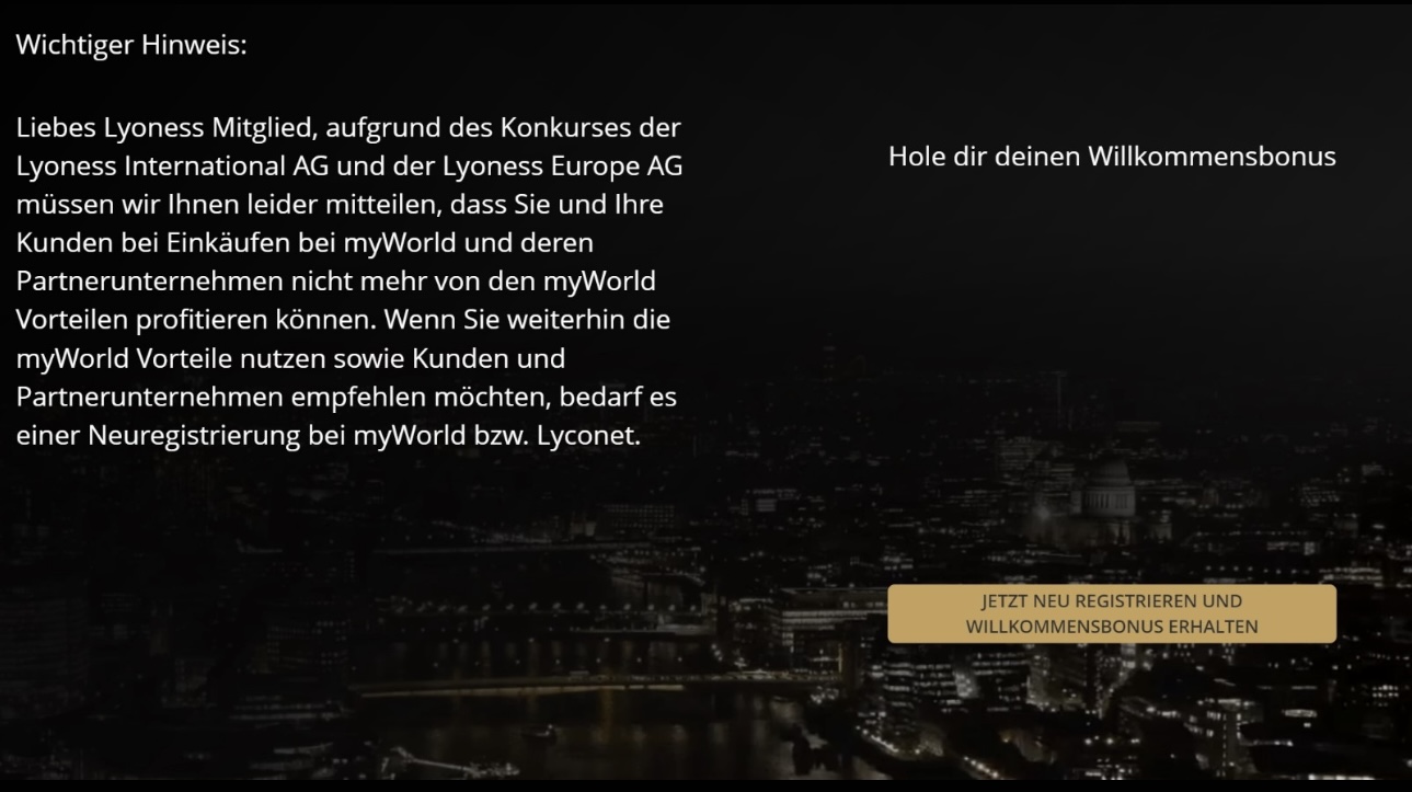 A causa del fallimento, il membro non può più partecipare al programma myWorld e deve effettuare una nuova registrazione presso Lyconet/myWorld. Naturalmente, al momento della nuova registrazione, è necessario accettare il passaggio a mSP.